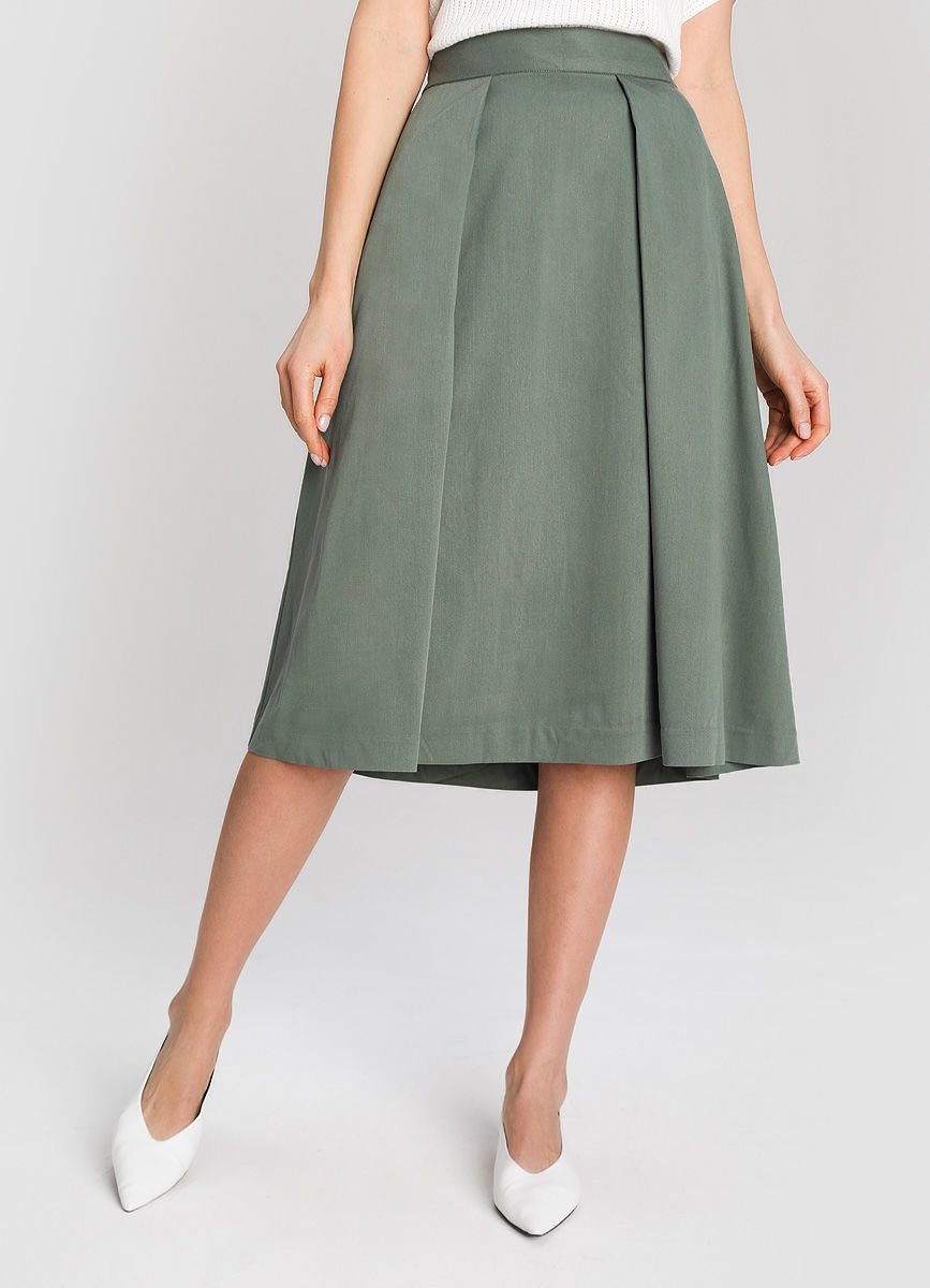 Широкие бёдра и узкие плечи. Чтобы подчеркнуть женственность фигуры, выбирайте юбку-карандаш или годе. Если хотите визуально уменьшить бёдра ‒ примерьте юбку А-силуэта или свободную модель.